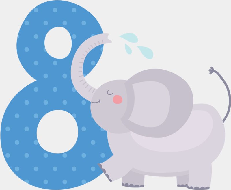 Eight Birthday Animal Elephant Number 1