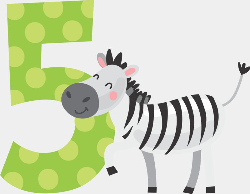 Five Birthday Animal Zebra Number 1