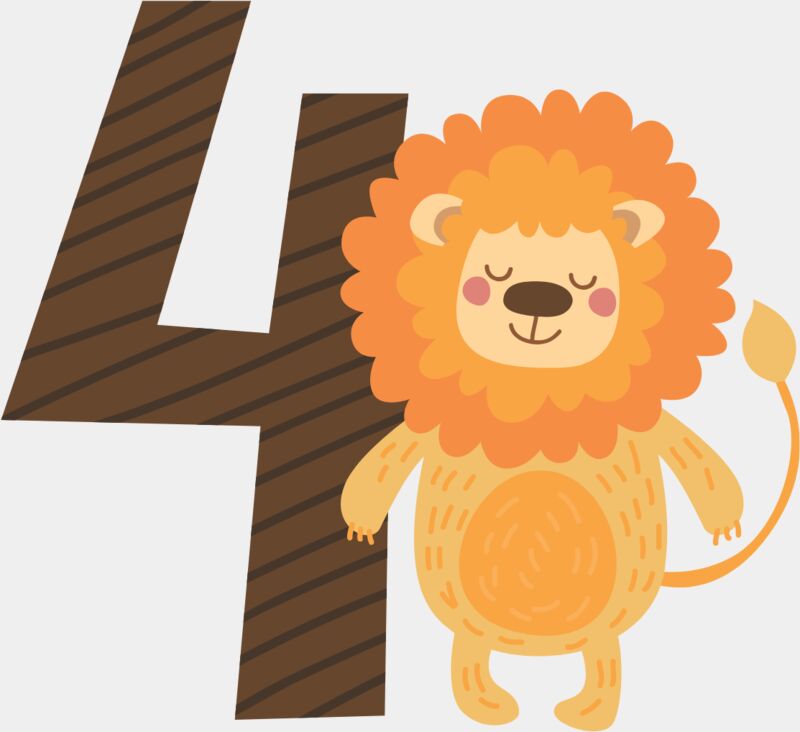 Four Birthday Animal Lion Number 1
